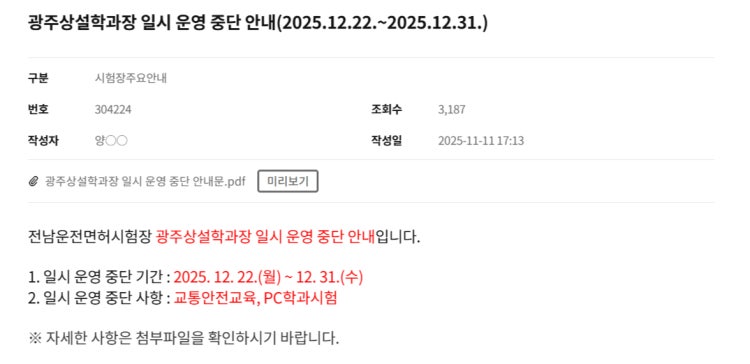 광주학과장에서 교육받으려면 내년(2026년)에 받아야 합니다.