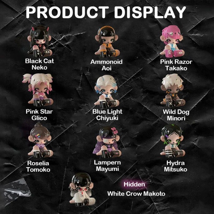 첨부 하신 사진 왼쪽 앞에 앉아 있는 아이는 黑猫NEKO (흑묘네코, 블랙캣 네코), 오른쪽 뒤 九头蛇 MITSUKO (하이드라/히드라 미츠코, Hydra Mitsuko)